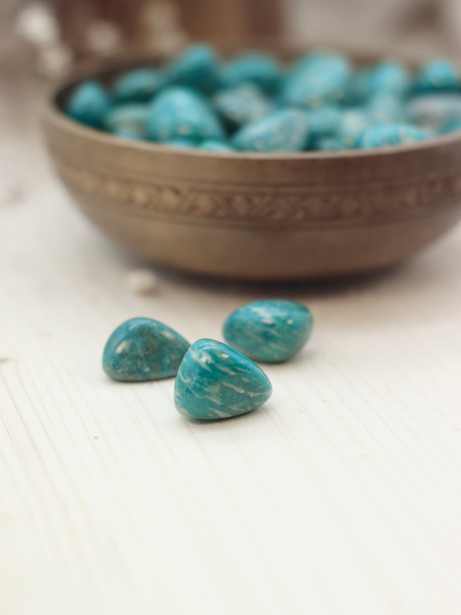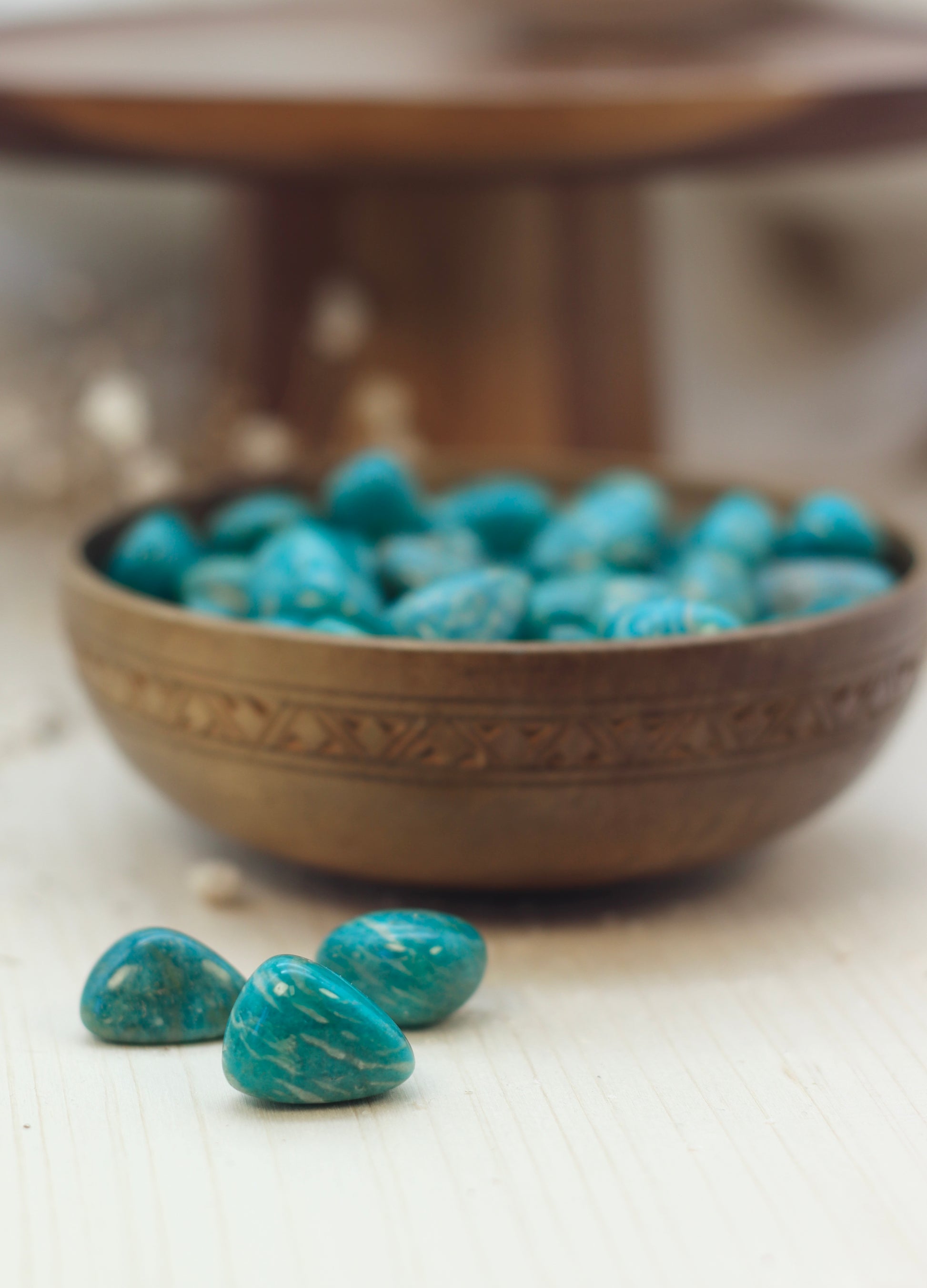Abweichungen in Farbe, Größe und Form sind möglich, da es sich um ein Naturprodukt handelt. Ich wähle intuitiv, den zu dir passenden Amazonit Trommelstein aus und energetisiere ihn mit dem Sternenstaub Elixier. Preis versteht sich pro Stück.