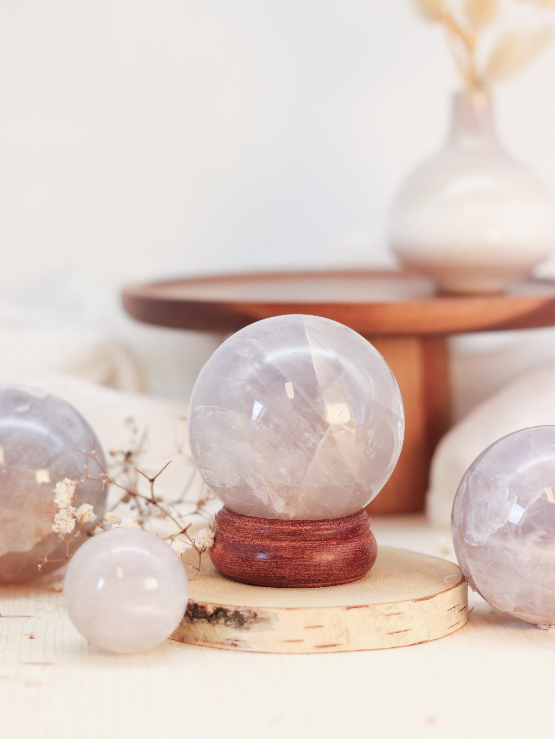 Hallo du, ich bin eine Blaue Rosenquarz Kugel!