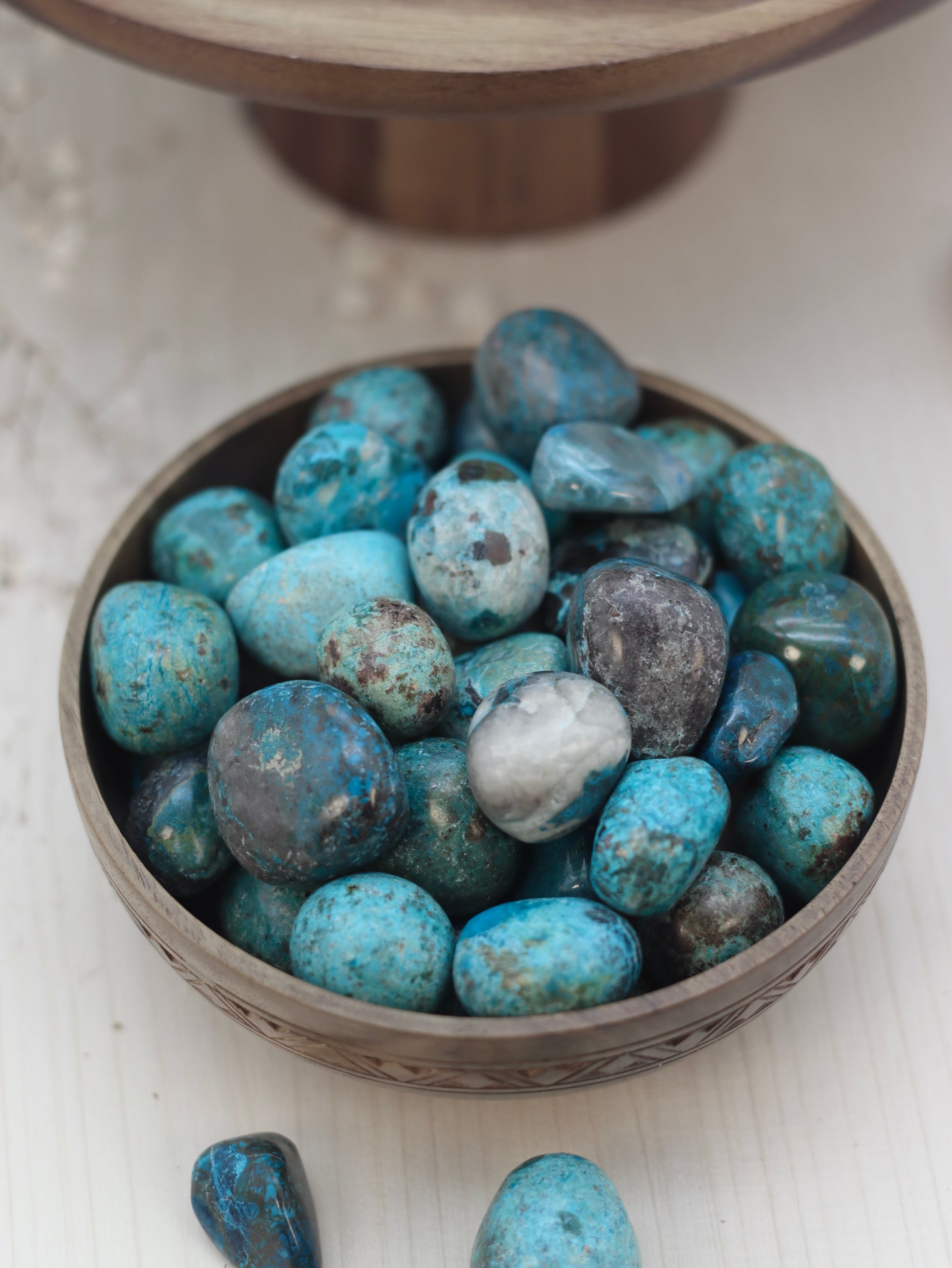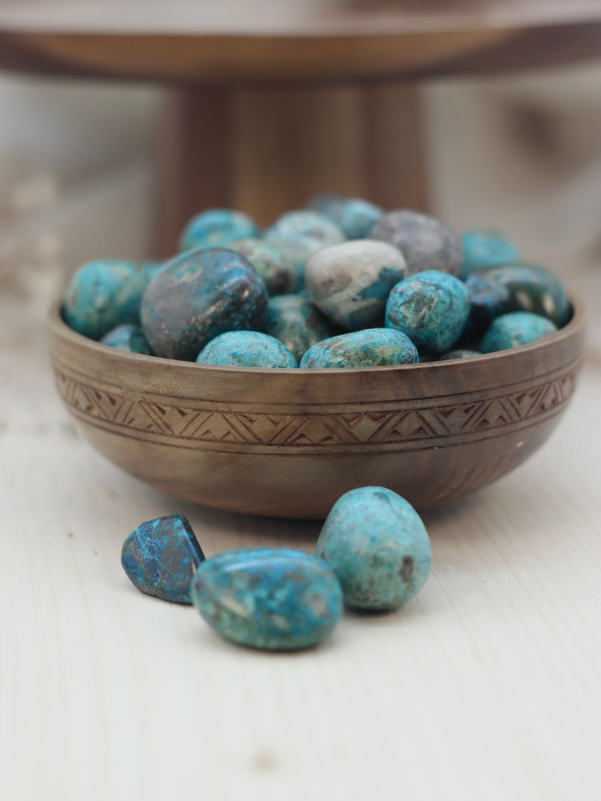 Hallo du, ich bin ein Chrysokoll Trommelstein!