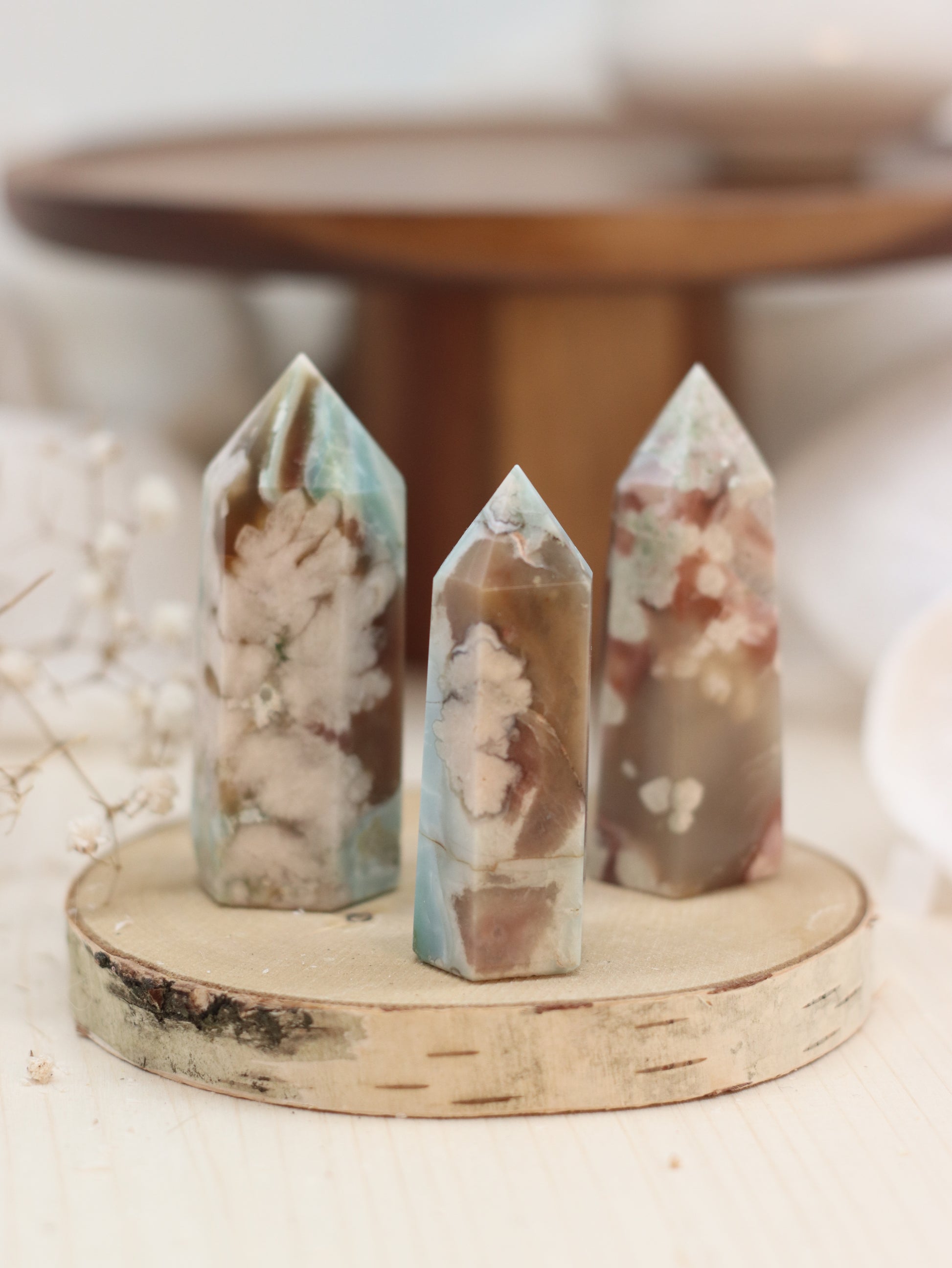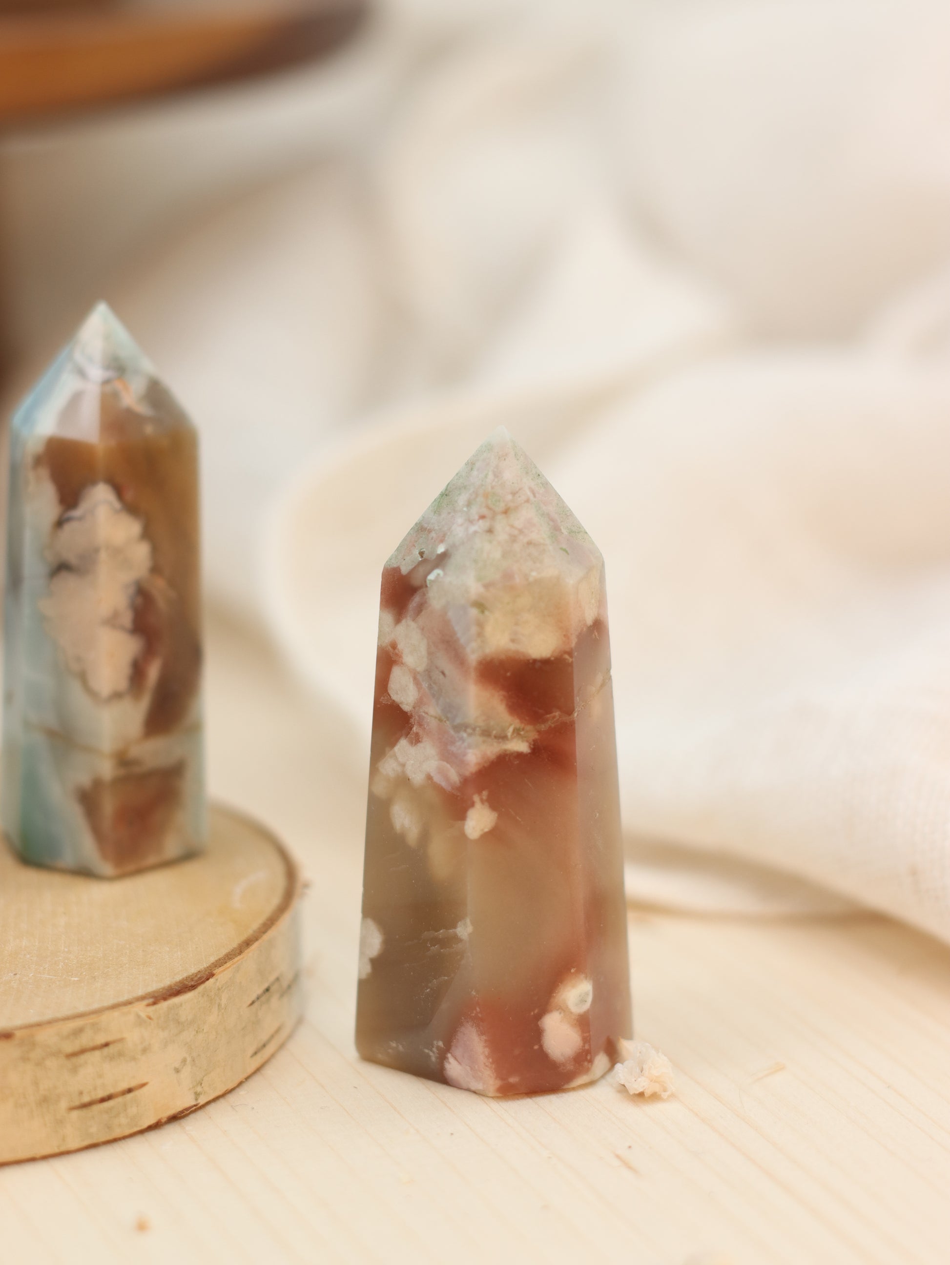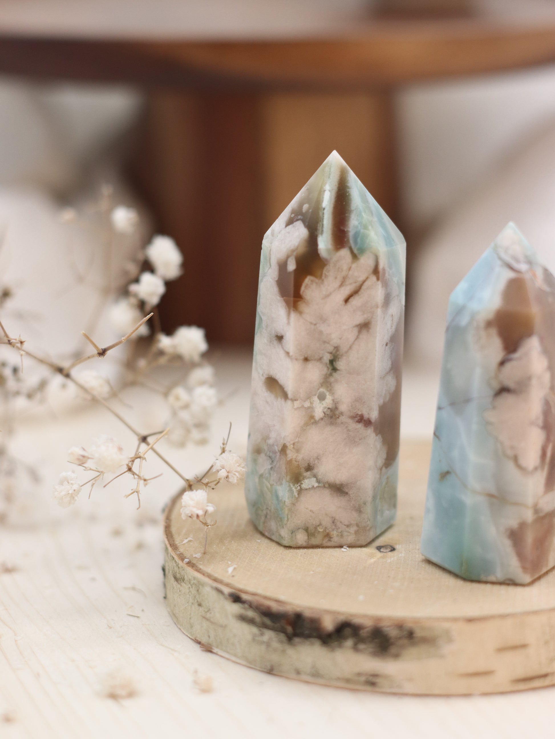 Abweichungen in Farbe, Größe und Form sind möglich, da es sich um ein Naturprodukt handelt. Ich wähle intuitiv, den zu dir passenden grünen Kirschblüten Chalcedon Obelisken aus und energetisiere ihn mit dem Sternenstaub Elixier. Preis versteht sich pro Stück.