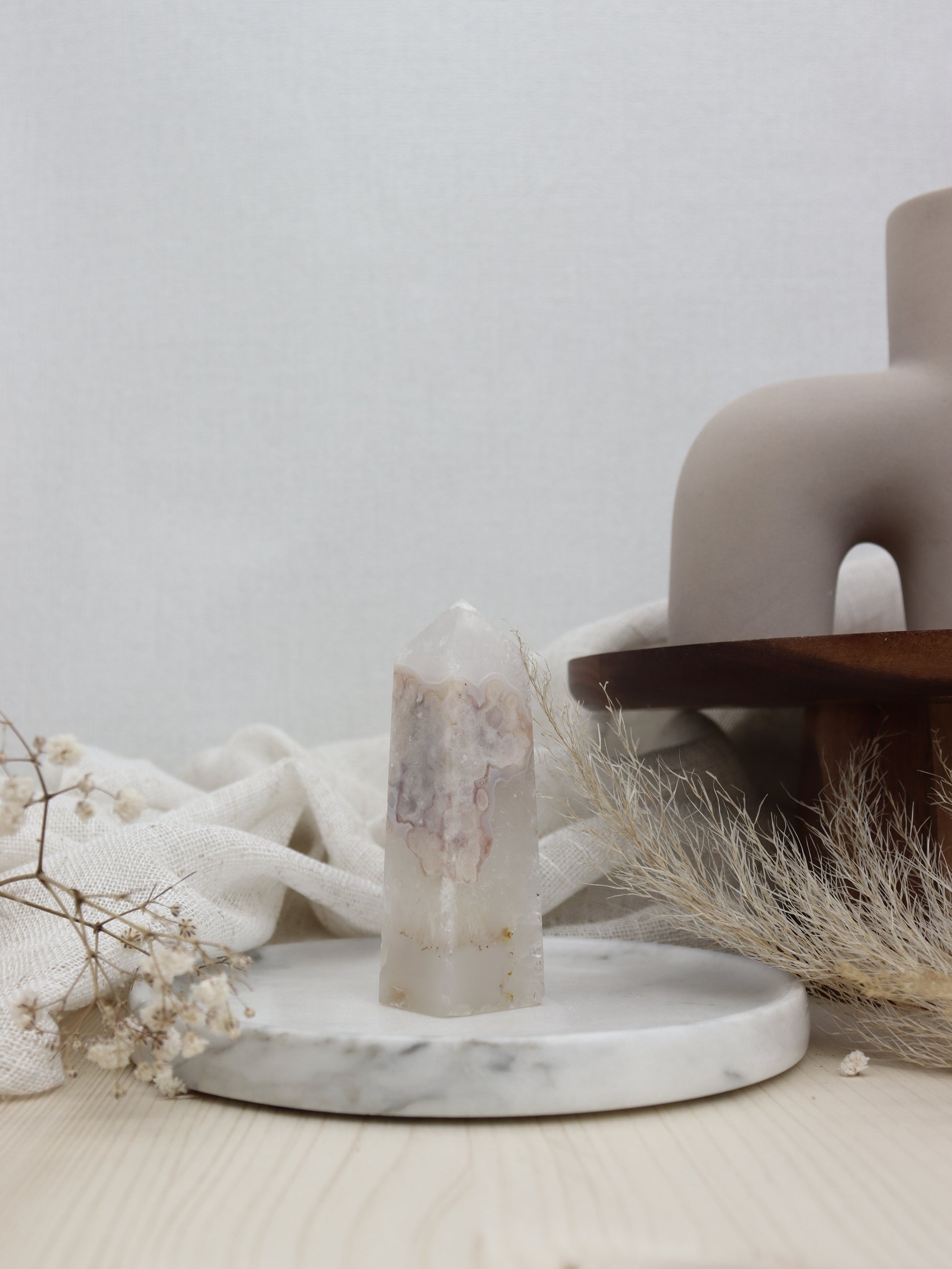 Abweichungen in Farbe, Größe und Form sind möglich, da es sich um ein Naturprodukt handelt. Ich wähle intuitiv, den zu dir passenden Kirschblüten Chalcedon Obelisken aus und energetisiere ihn mit dem Sternenstaub Elixier. Preis versteht sich pro Stück.