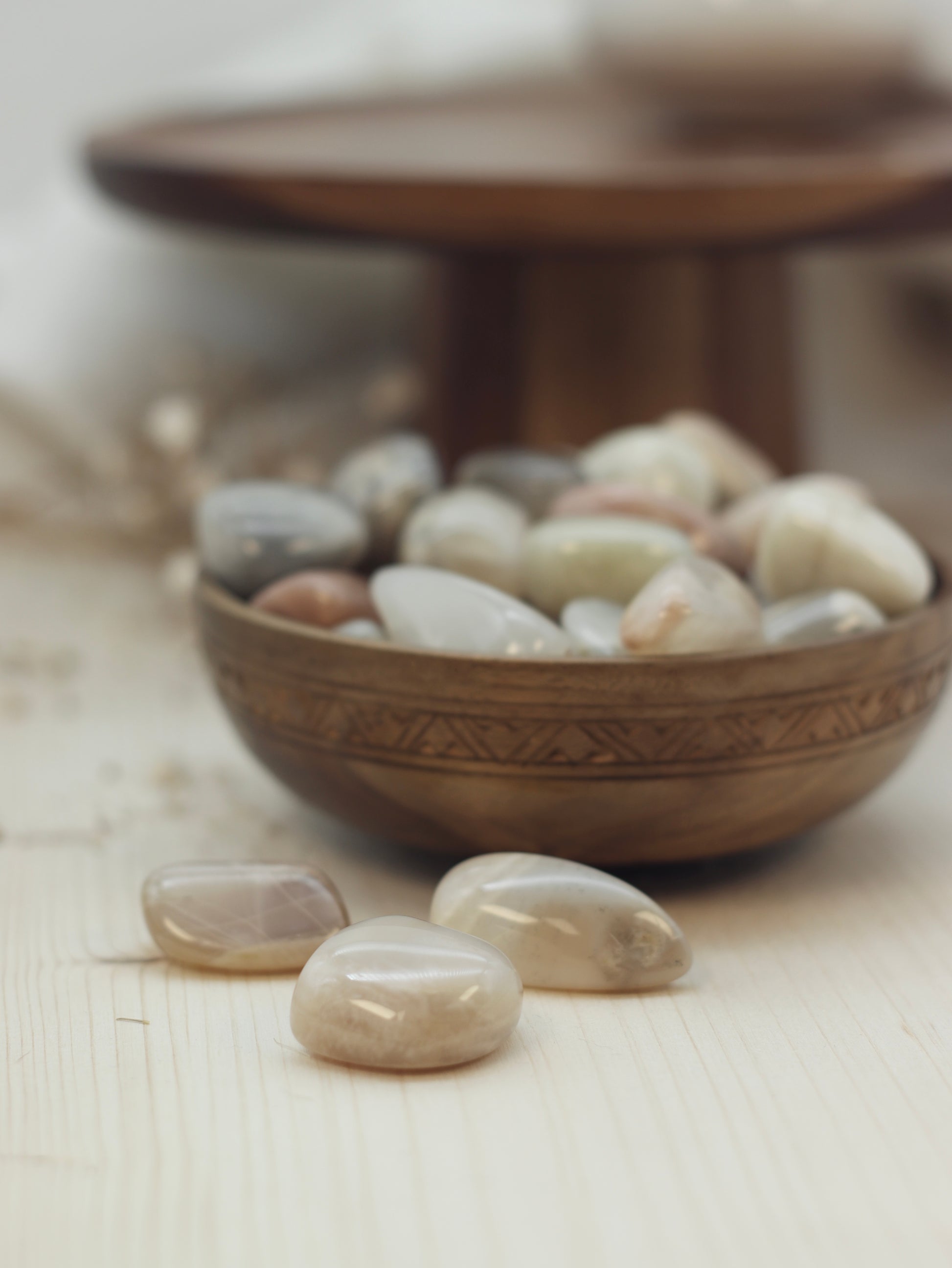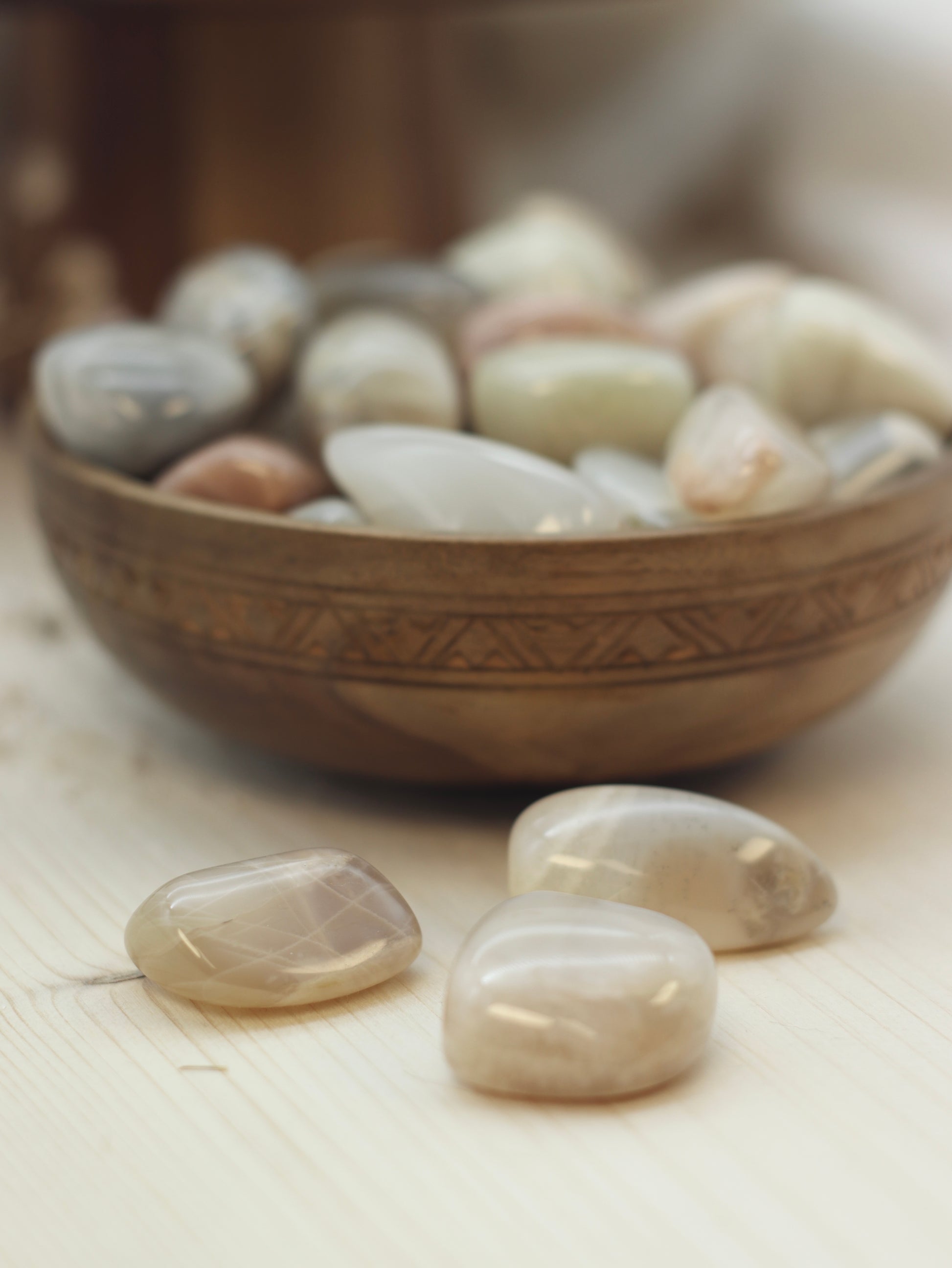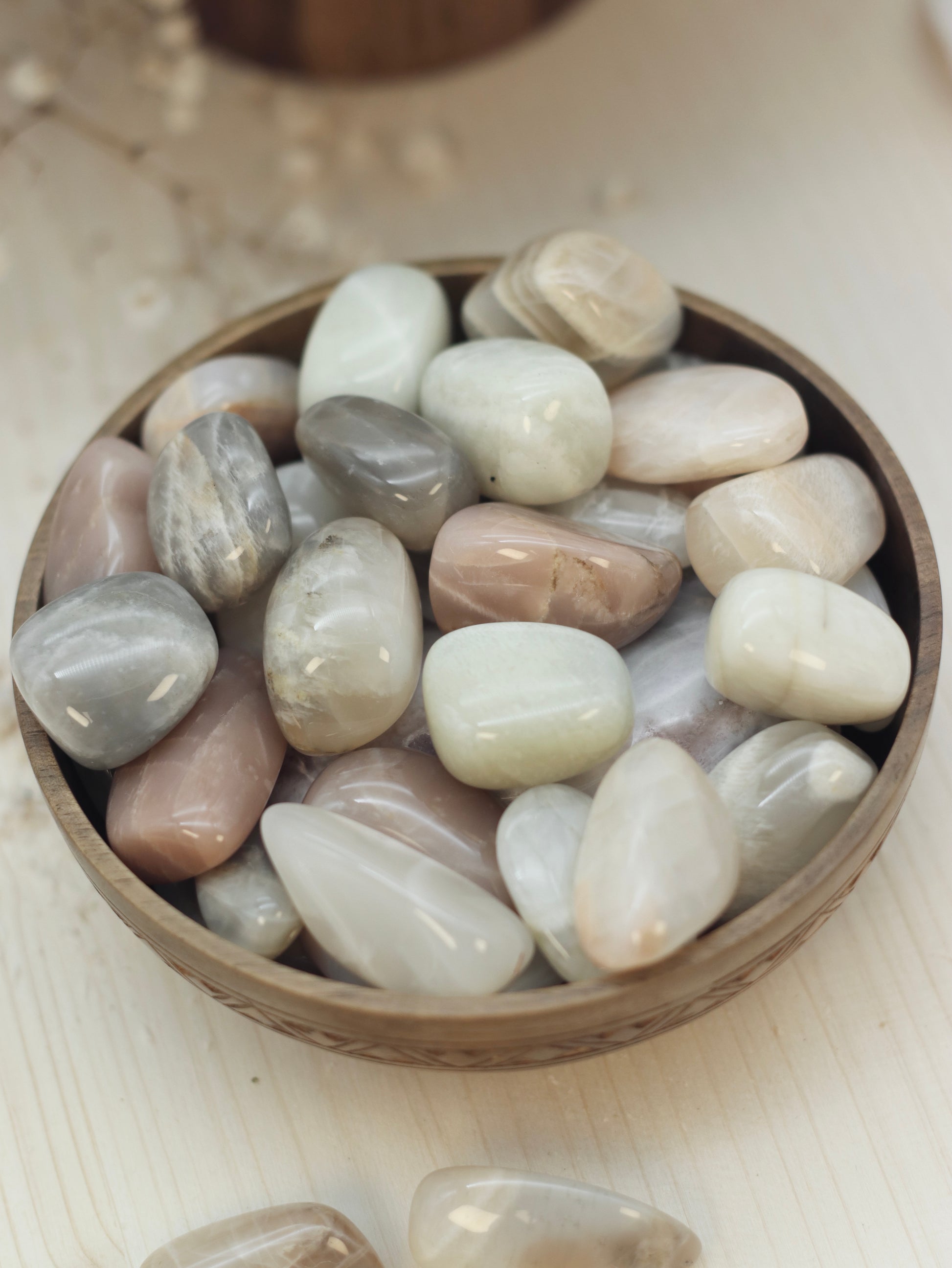 Ich bin der Stein der Weiblichkeit, Intuition und emotionalen Balance. Meine sanfte, geheimnisvolle Energie verbindet dich mit den Zyklen des Mondes und hilft dir, Veränderungen mit Vertrauen und Gelassenheit zu begegnen. Ich fördere deine innere Weisheit, verstärke deine Medialität und helfe dir, auf deine Intuition zu hören.