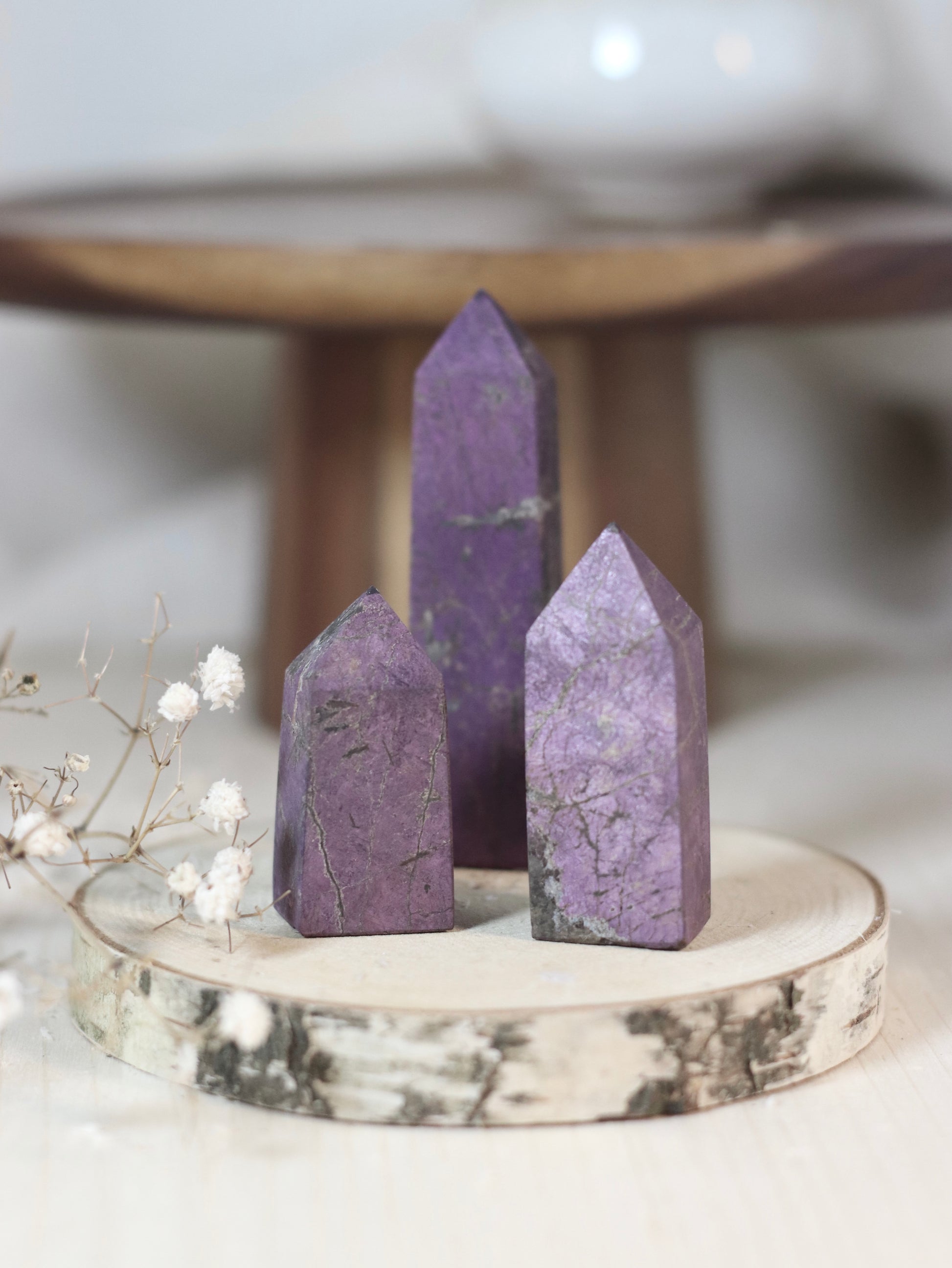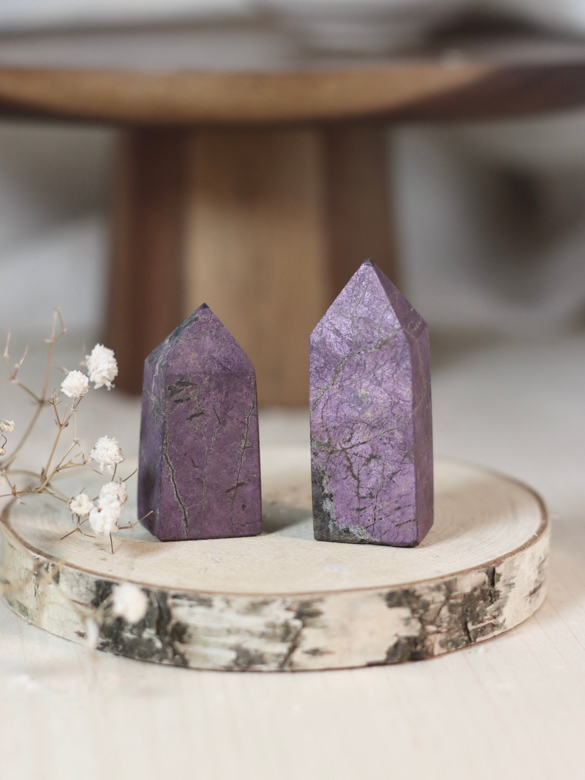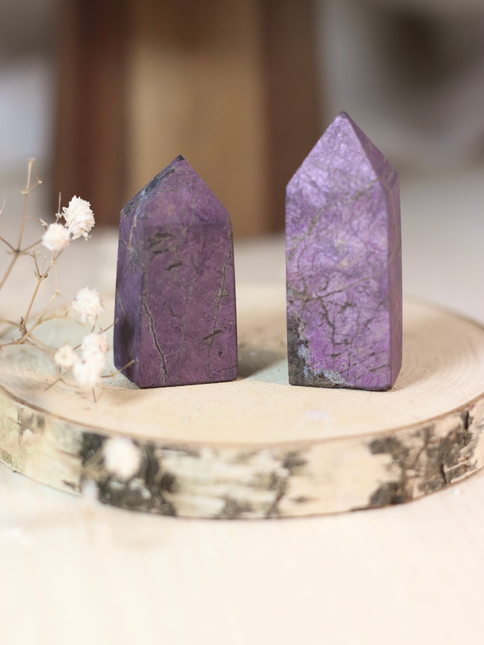 Abweichungen in Farbe, Größe und Form sind möglich, da es sich um ein Naturprodukt handelt. Ich wähle intuitiv, den zu dir passenden Purpurit Turm aus und energetisiere ihn mit dem Sternenstaub Elixier. Preis versteht sich pro Stück.
