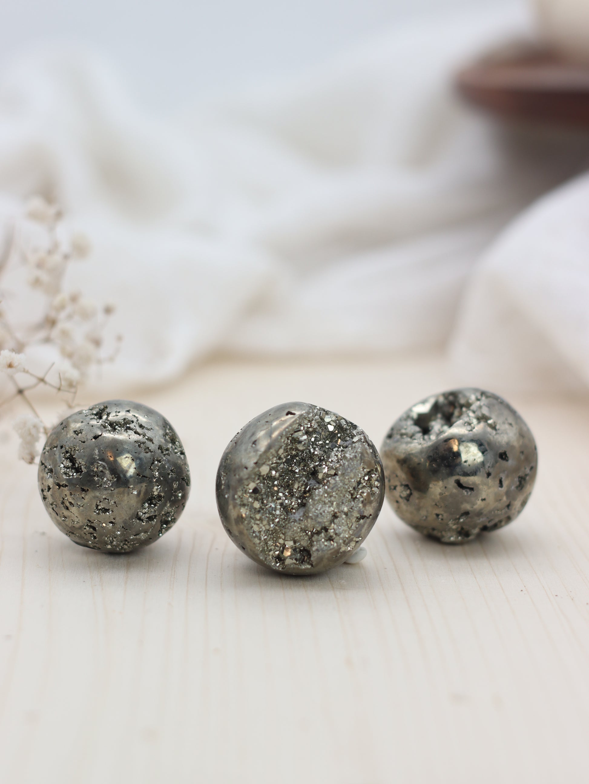 Abweichungen in Farbe, Größe und Form sind möglich, da es sich um ein Naturprodukt handelt. Ich wähle intuitiv, die zu dir passende Pyrit Kugel aus und energetisiere sie mit dem Sternenstaub Elixier. Preis versteht sich pro Stück.