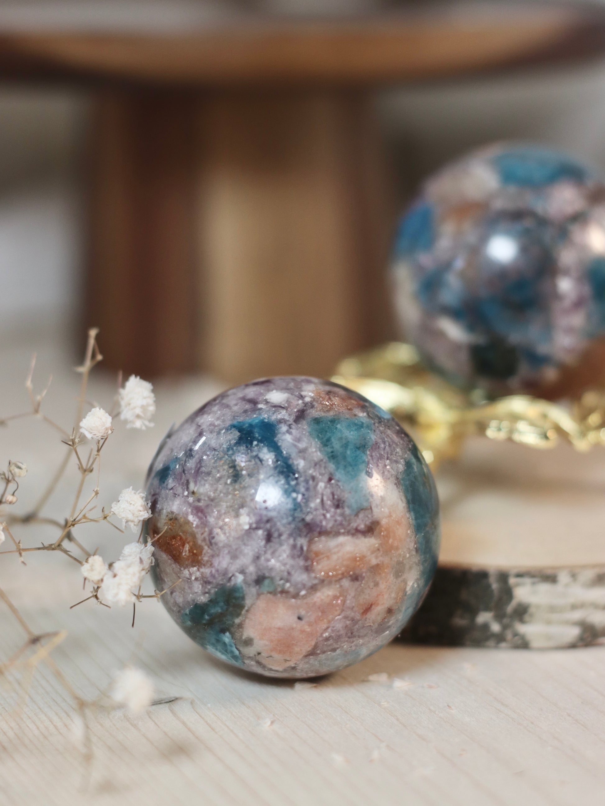 Sonnenstein Lepidolith Apatit Mix Kugeln