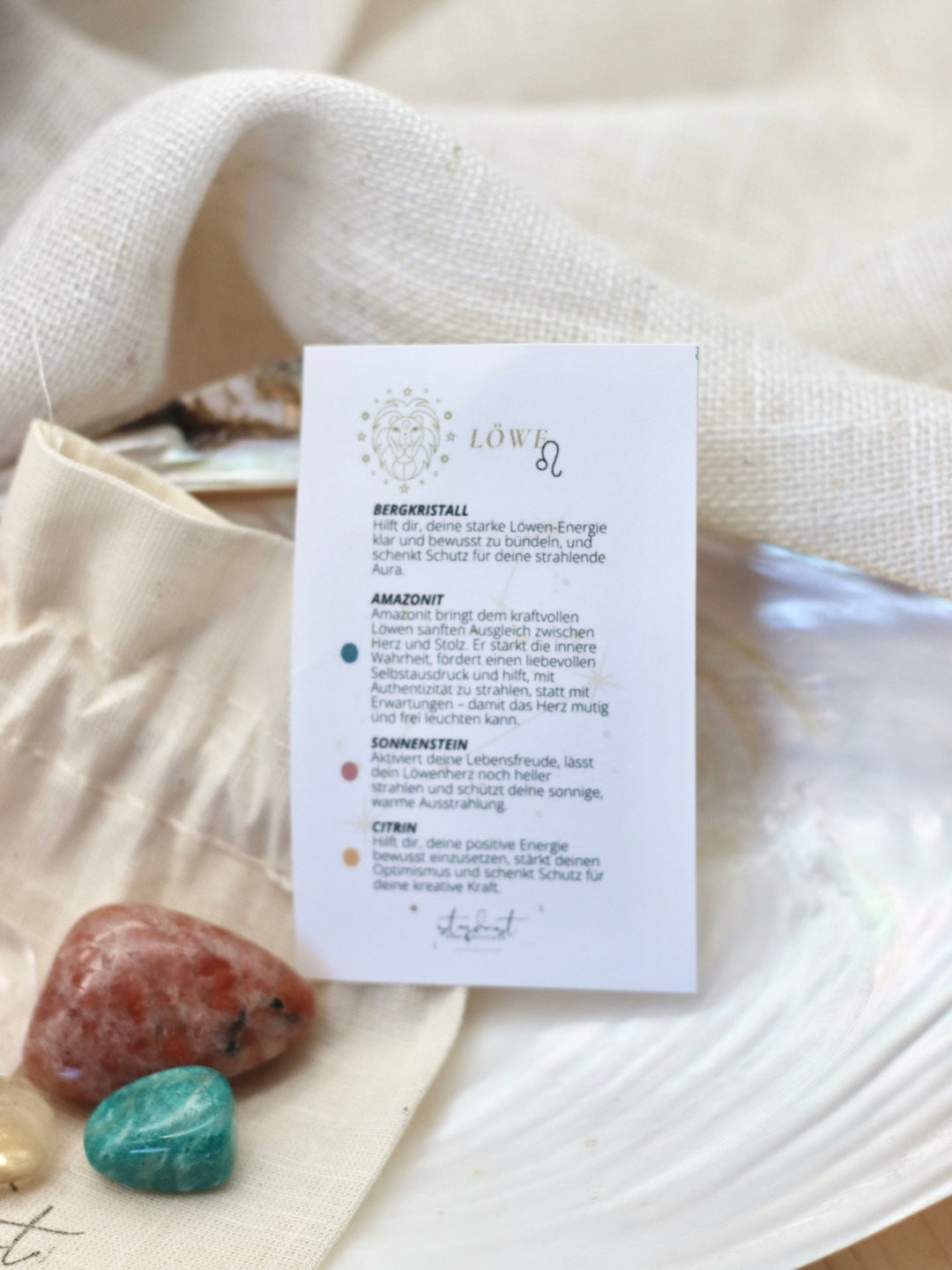 Hallo du, ich bin ein Sternzeichen Set für den Löwen und folgende Kristalle sind enthalten: