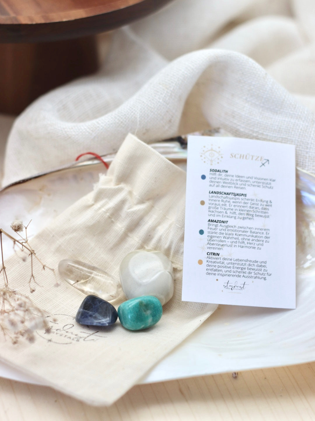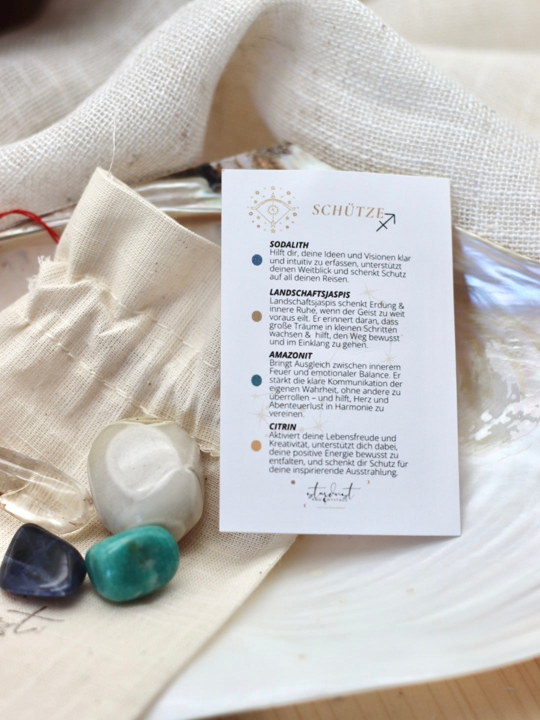 Hallo du, ich bin ein Sternzeichen Set für den Schützen und folgende Kristalle sind enthalten: