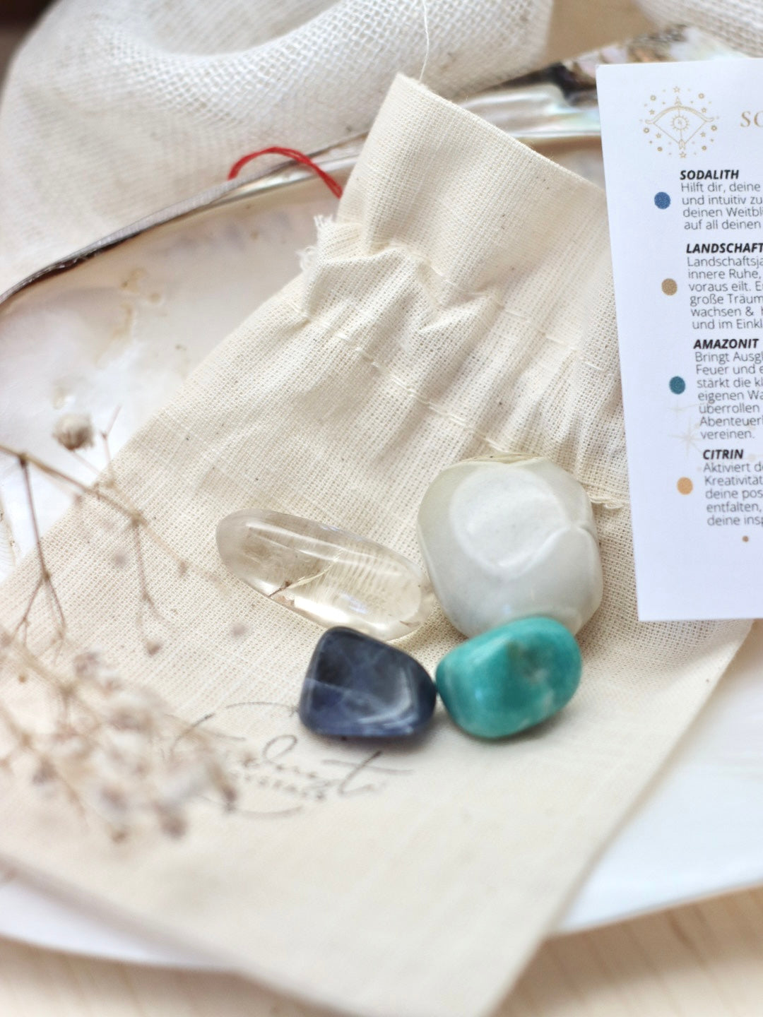 Ich habe jedes Set so konzipiert, dass du energetisch ganzheitlich begleitet wirst. Dabei war mir wichtig, nicht nur den klassischen Geburtsstein zu berücksichtigen, sondern auch Kristalle auszuwählen, die im Alltag wirken und gut mit deiner Energie harmonieren. Manche traditionelle Monatssteine – wie Diamant, Rubin oder Aquamarin – sind in der Umsetzung nicht enthalten. Stattdessen habe ich intuitiv einen weiteren Glücksstein oder Ausgleichsstein gewählt, der dich liebevoll unterstützt.