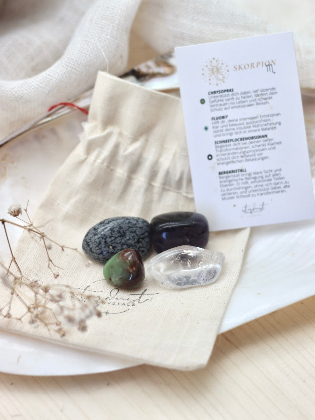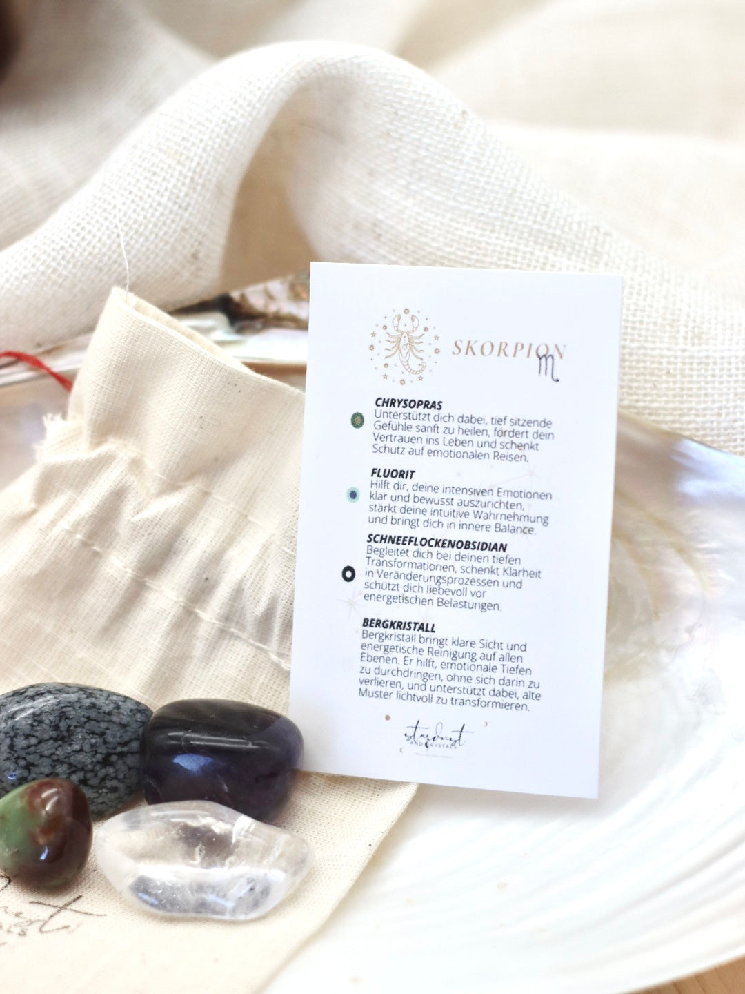 Hallo du, ich bin ein Sternzeichen Set für den Skorpion und folgende Kristalle sind enthalten: