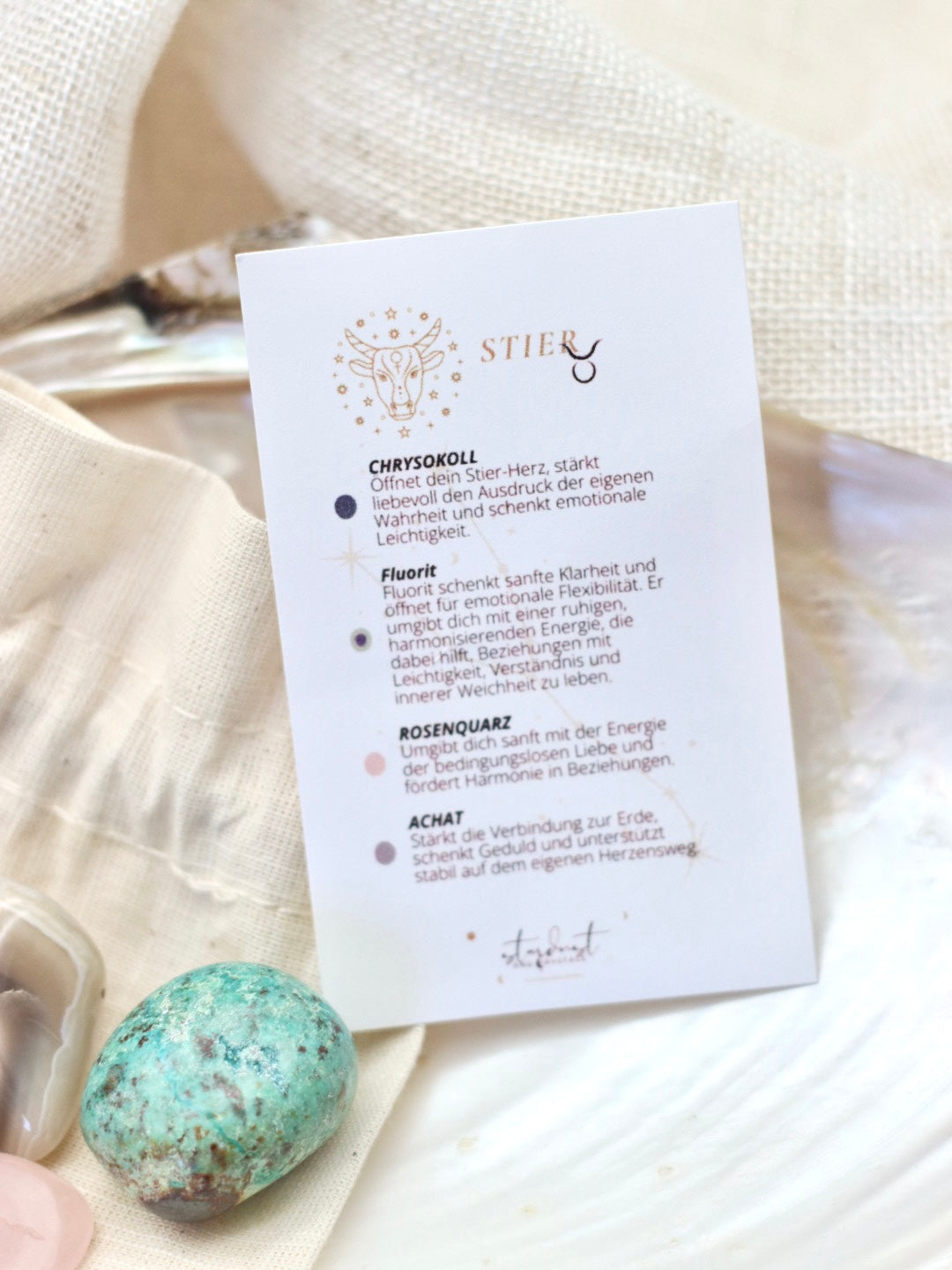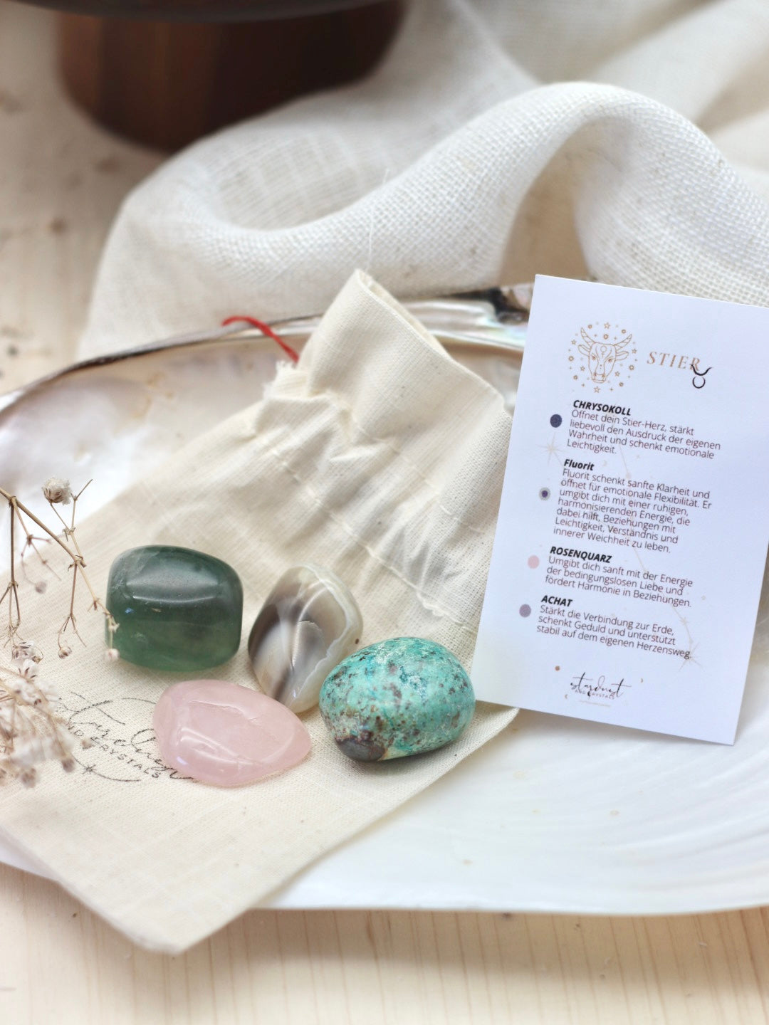 Hallo du, ich bin ein Sternzeichen Set für den Stier und folgende Kristalle sind enthalten: