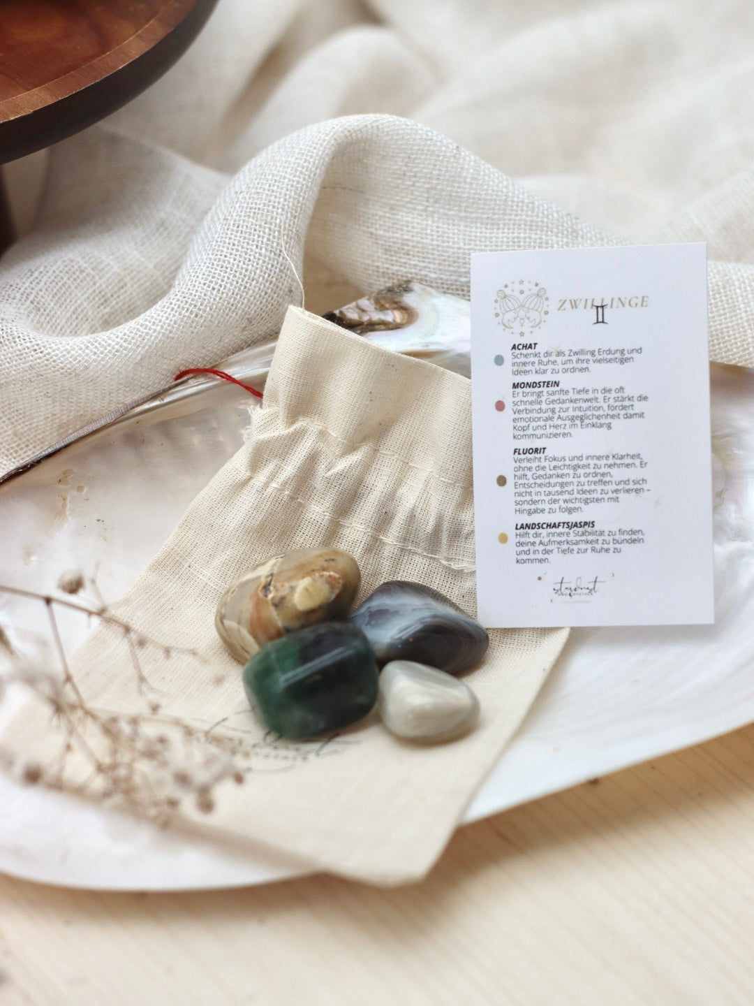 Hallo du, ich bin ein Sternzeichen Set für die Zwillinge und folgende Kristalle sind enthalten:
